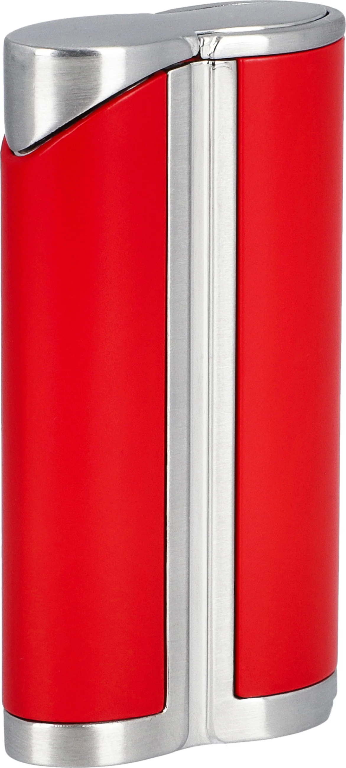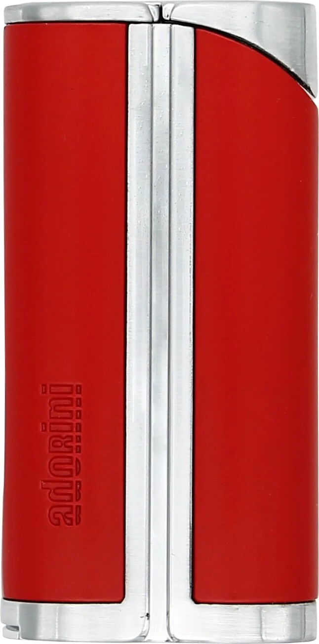 Tryskový zapalovač adorini Curve s jedním plamenem v červené / saténové stříbrné s důlčíkem