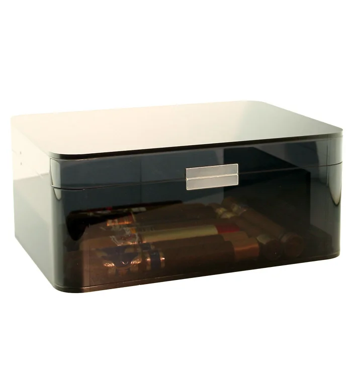 Popularita akrylových humidorů roste, představují totiž moderní uskladnění pro milovníky doutníků. Ať už jsou to humidory čiré, nebo tónované, poskytují bezpečnou ochranu a zároveň stylově prezentují vaši sbírku. Tento tónovaný akrylátový humidor spojuje funkčnost s atraktivním designem a nabízí prostor pro zhruba 50 doutníků.