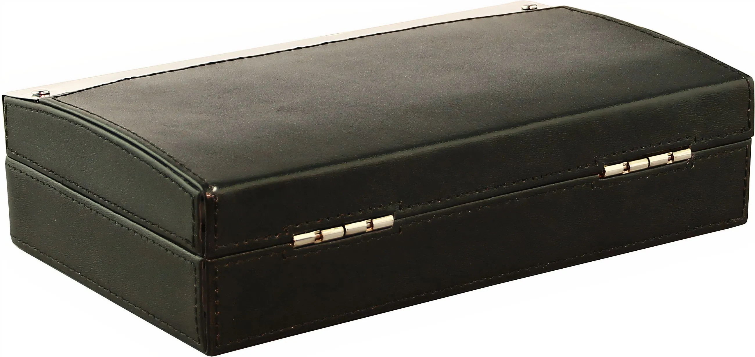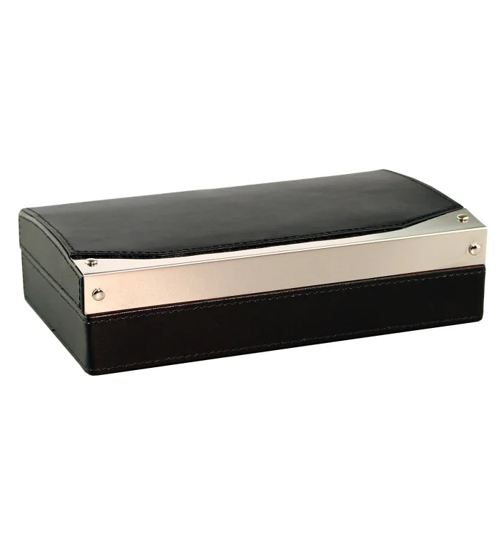 kompaktní a elegantní cestovní humidor je dokonalou volbou pro milovníky doutníků, kteří chtějí své poklady přenášet bezpečně a stylově. Tento humidor, potažený elegantní černou kůží a zdobený lesklými chromovanými prvky a dekorativním prošíváním, zaujme svým vysoce kvalitním vzhledem a nádechem.