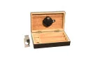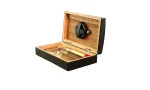 - V přihrádce se nachází vysoce kvalitní gilotinový nůž z nerezové oceli na ořezání doutníků, který je magneticky připevněn. Toto inovativní řešení vaše doutníky chrání před možným poškozením během přepravy.
