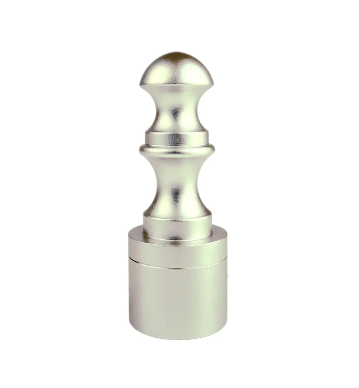 Elegantní design: Stříbrná barva a tvar připomínající šachovou figurku dodávají nástroji vytříbenou estetiku.