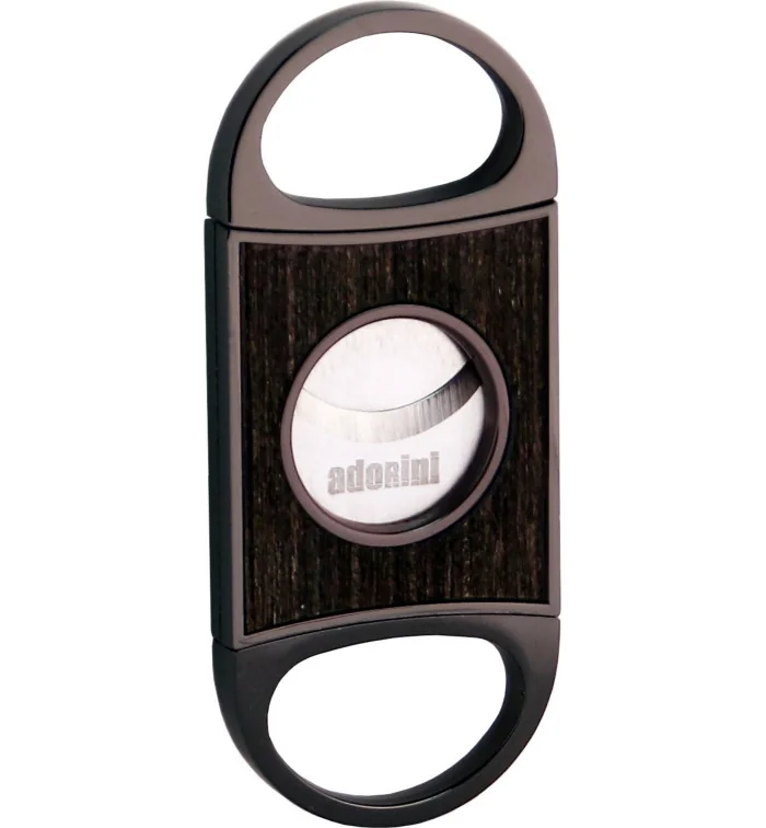 Dvojitá řezačka adorini, dubový dekor, gun metal Exkluzivní řezačka doutníků s intarzií z pravého dřeva Tato elegantní řezačka doutníků od adorini kombinuje lesklý gun metal kov se stylovou intarzií z pravého dubového dřeva. Dokonalá symbióza funkčnosti a exkluzivního designu pro náročného milovníka doutníků.