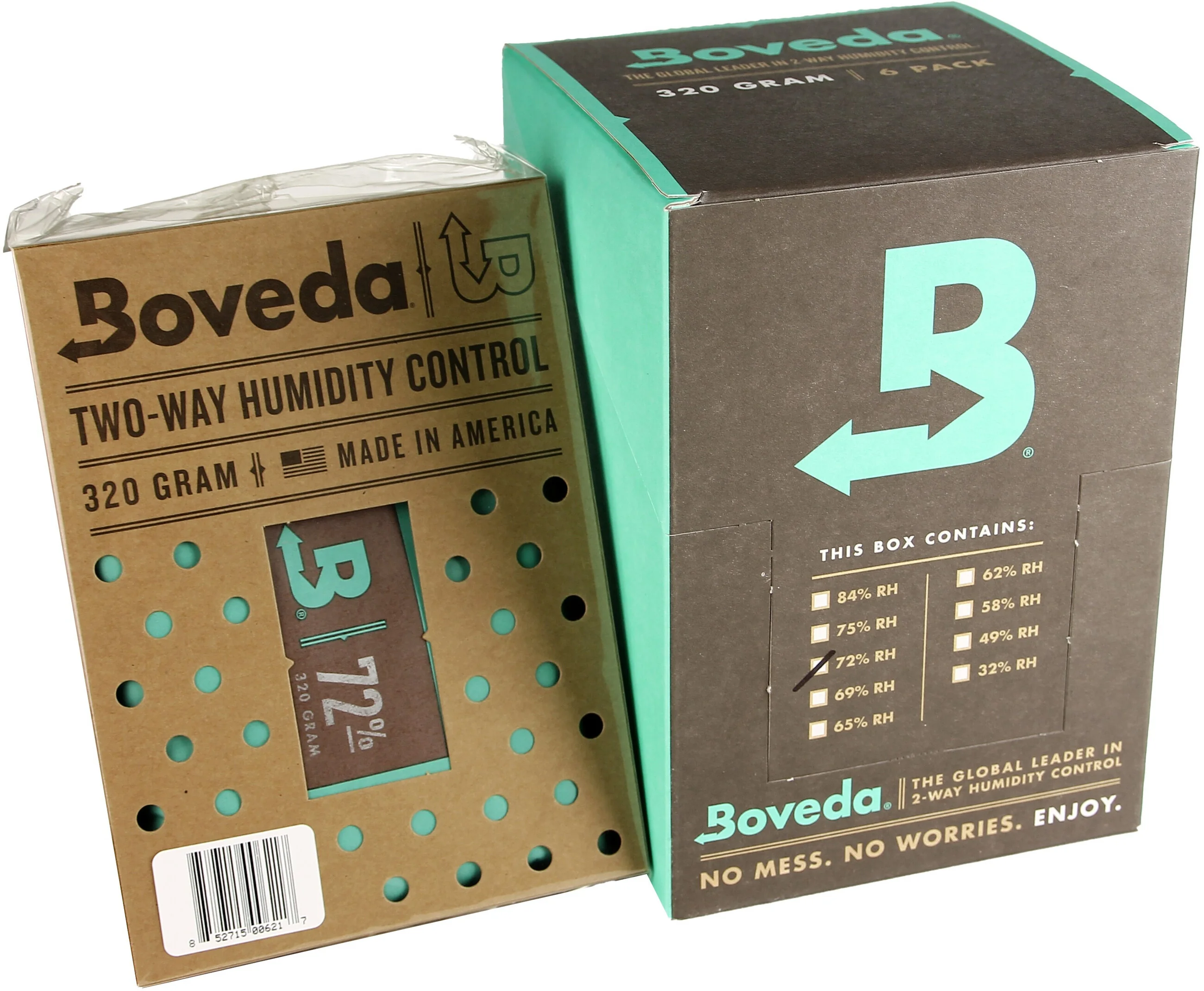 Dvoucestný zvlhčovač vzduchu Boveda je k dispozici v balení o hmotnosti 320 gramů s vlhkostí 72 %. Toto balení je určeno pro pro větší humidory nebo skladovací boxy a je ideální pro udržení optimálních podmínek vlhkosti až pro 100 doutníků.