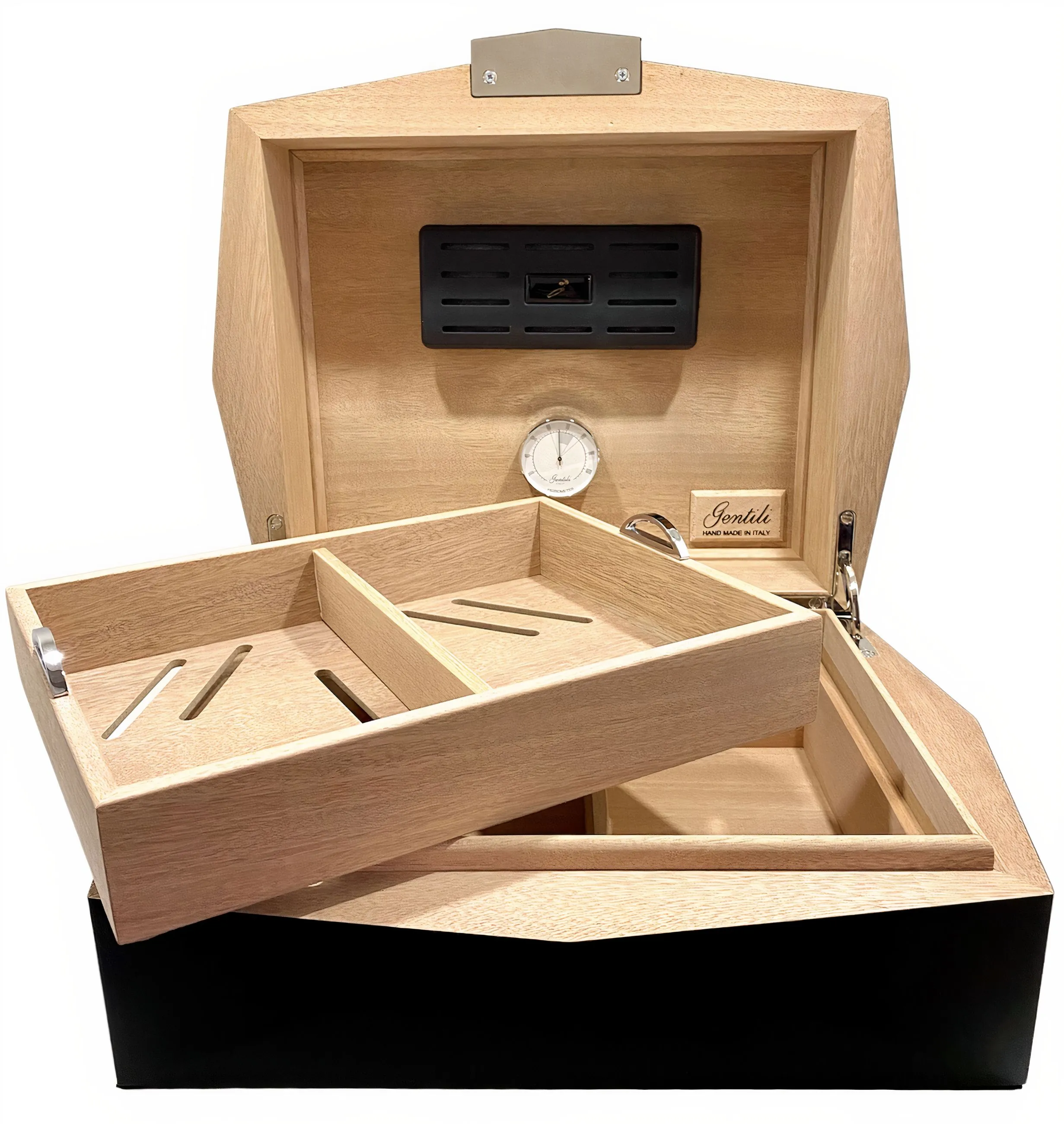 Spodní strana humidoru je pokryta černým plstěným potahem, takže se nemusíte obávat poškrábání vašeho nábytku