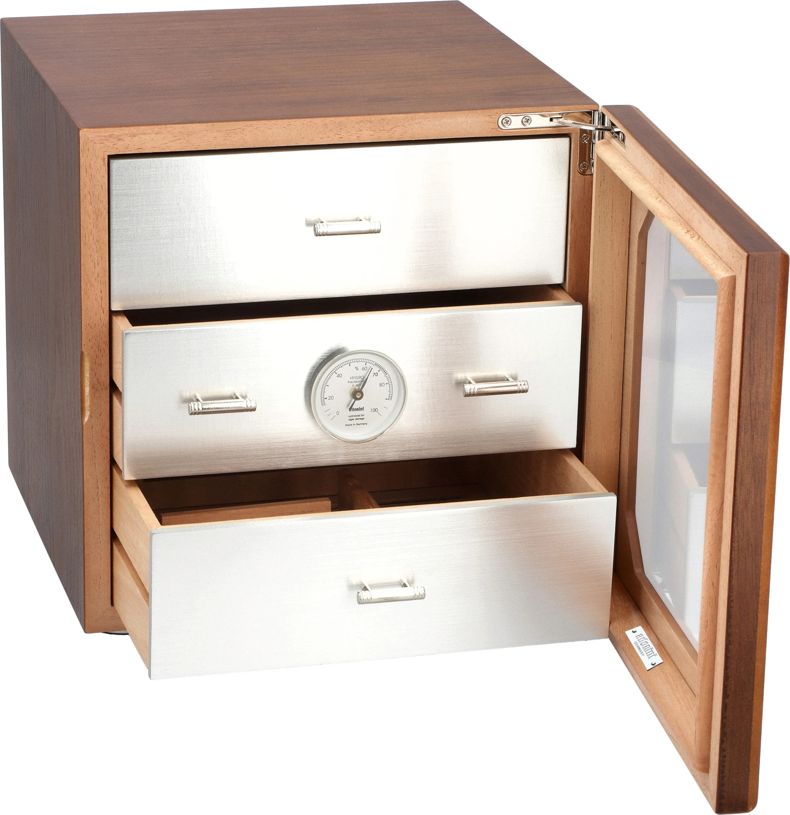 For a first humidor I cannot fault the quality. The storage space is excellent. It looks great too. I did buy an electronic hygrometer to go with it, as all the advice out there is not to trust analog gauges anymore but so far they have both been reading almost the same on a daily basis. Very pleased with it & no complaints.