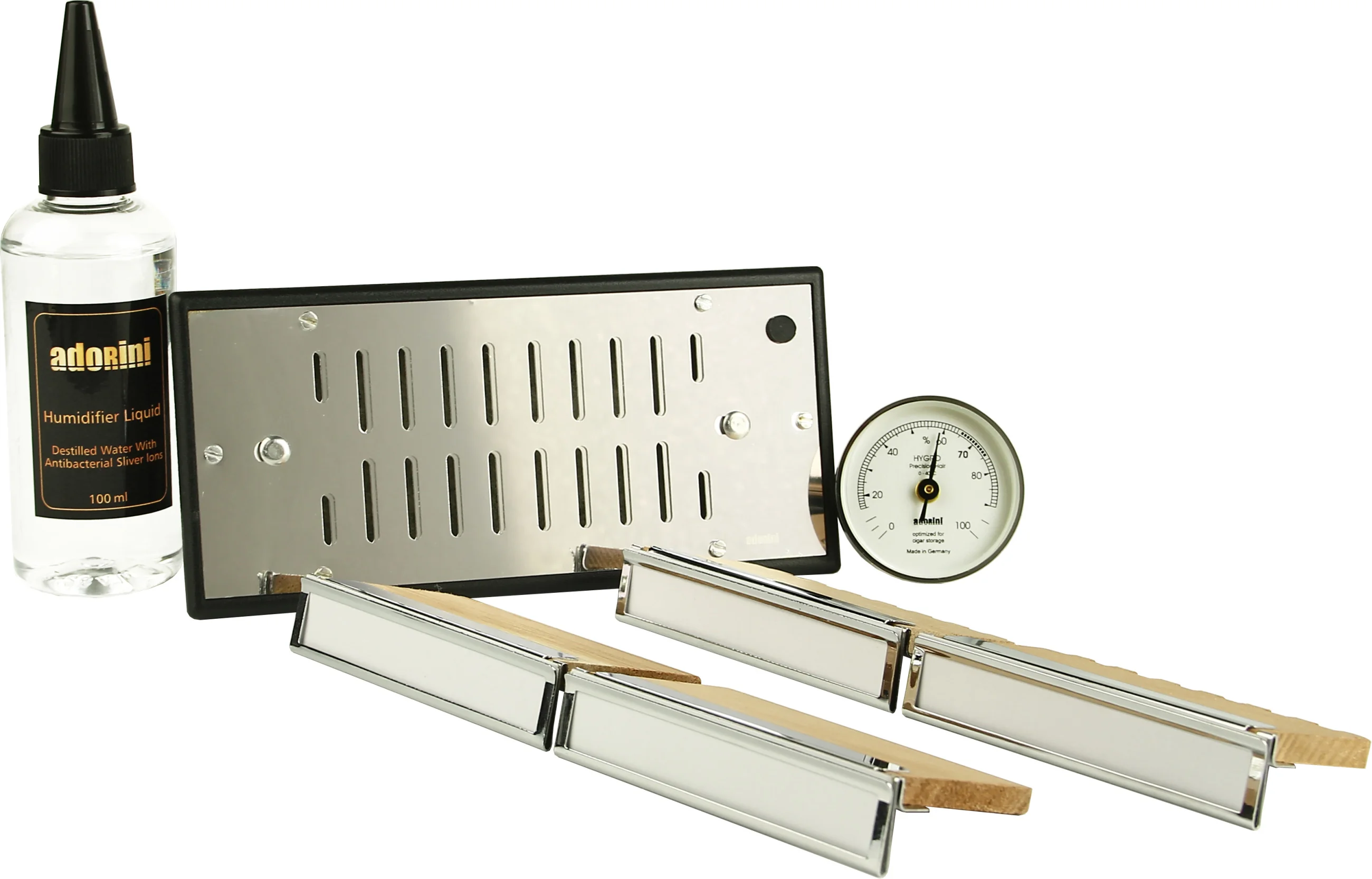 – A jako bonus je přiložena 100 ml láhev Humifit, což je zvlhčovací roztok od značky adorini. Budete mít tak vše potřebné pro okamžité uvedení humidoru do provozu.