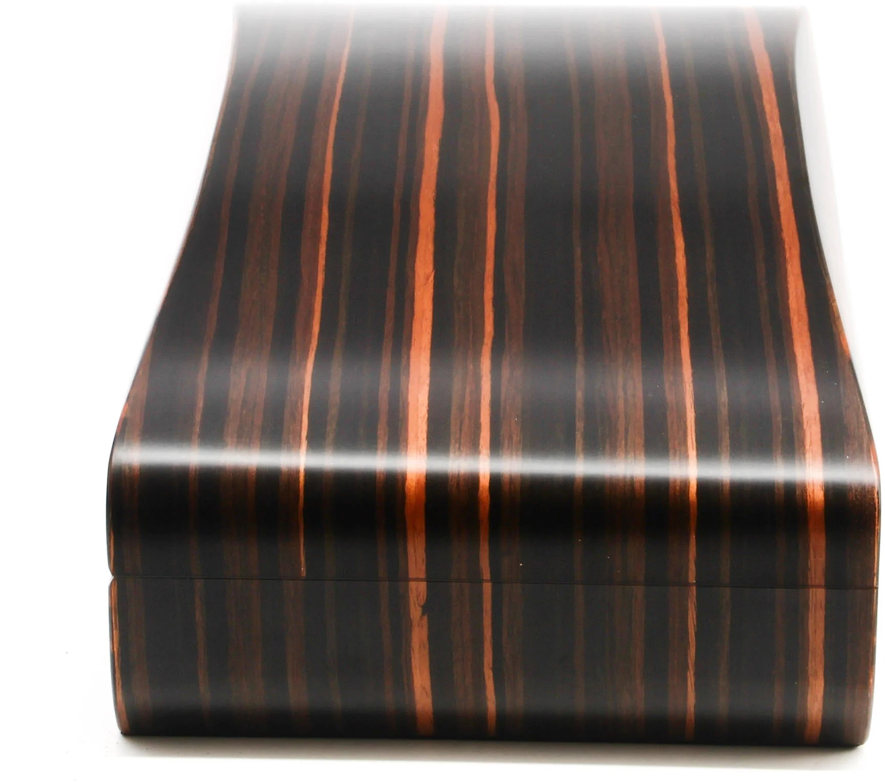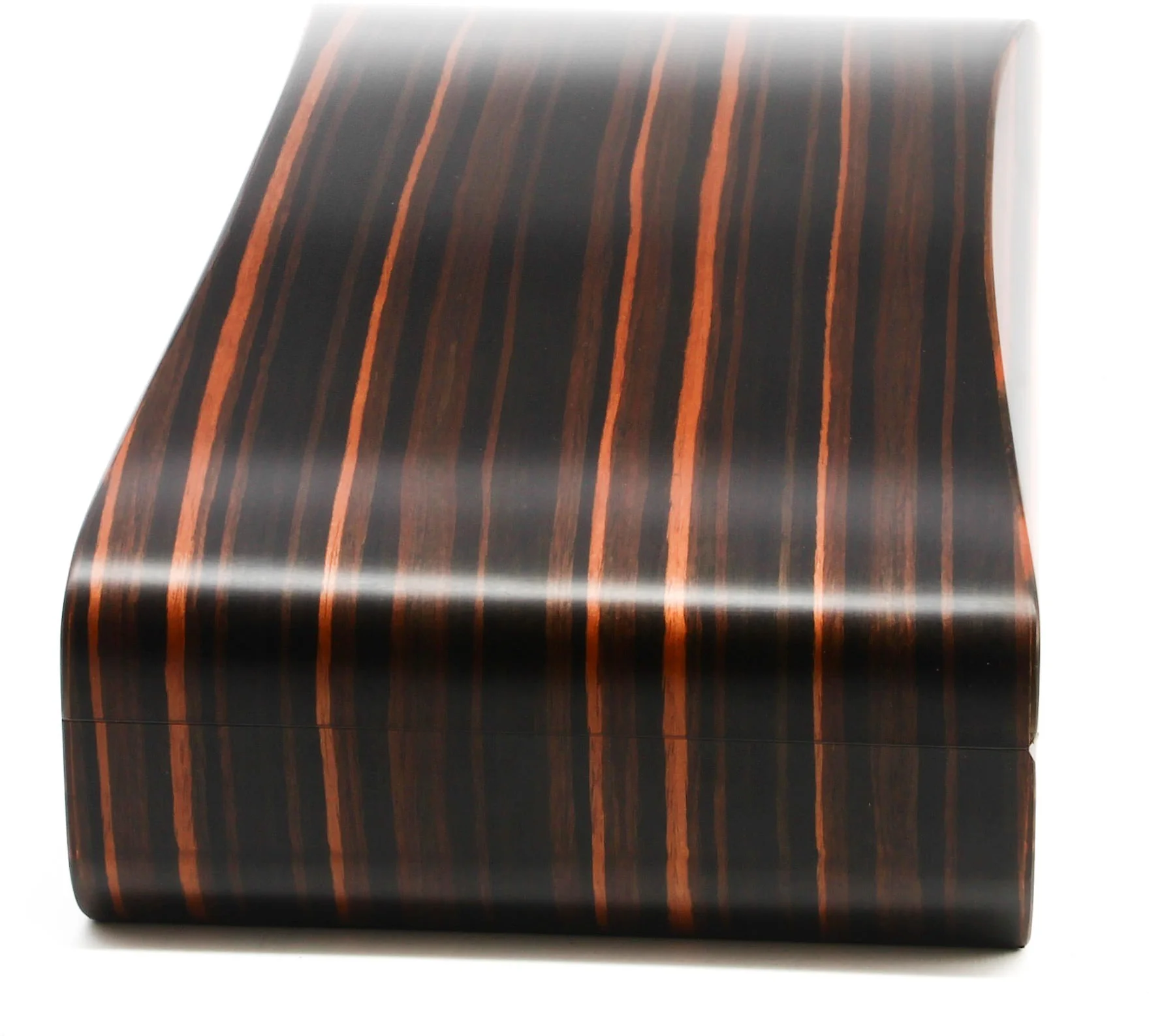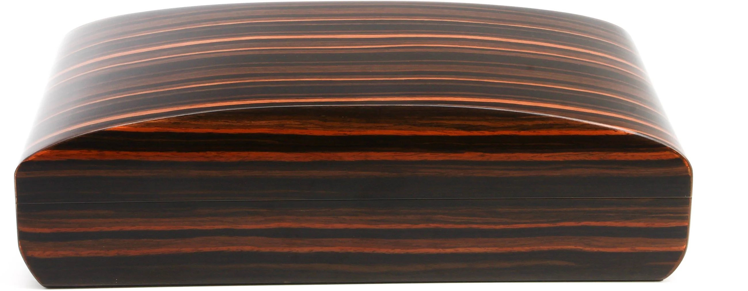 Tento úžasný kousek má díky svému podlouhlému tvaru a smyslným křivkám daleko k běžnému humidoru. Svůdná dýha makassar vzrušuje širokými tahy světlé a tmavé kresby dřeva, která krásně přechází přes sofistikovaný oválný tvar humidoru.