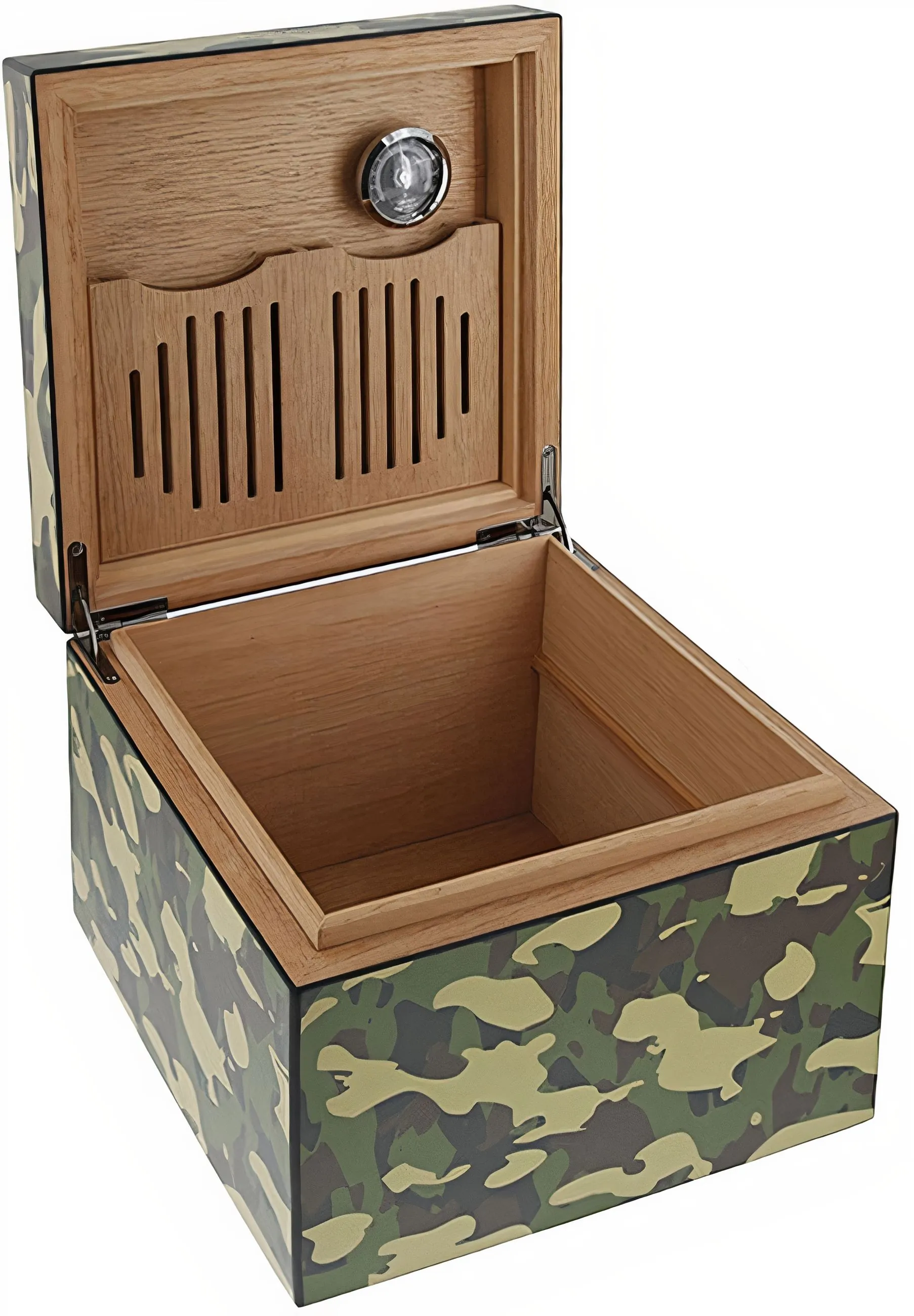 Humidor značky S.T. Dupont ve tvaru kostky s motivem kamufláže 001317 je moderní a luxusní humidor od renomovaného francouzského výrobce luxusního zboží S.T. Dupont. Díky jedinečnému motivu kamufláže a dokonalé kombinaci funkčnosti a stylu je nezbytným kouskem pro každého milovníka doutníků.