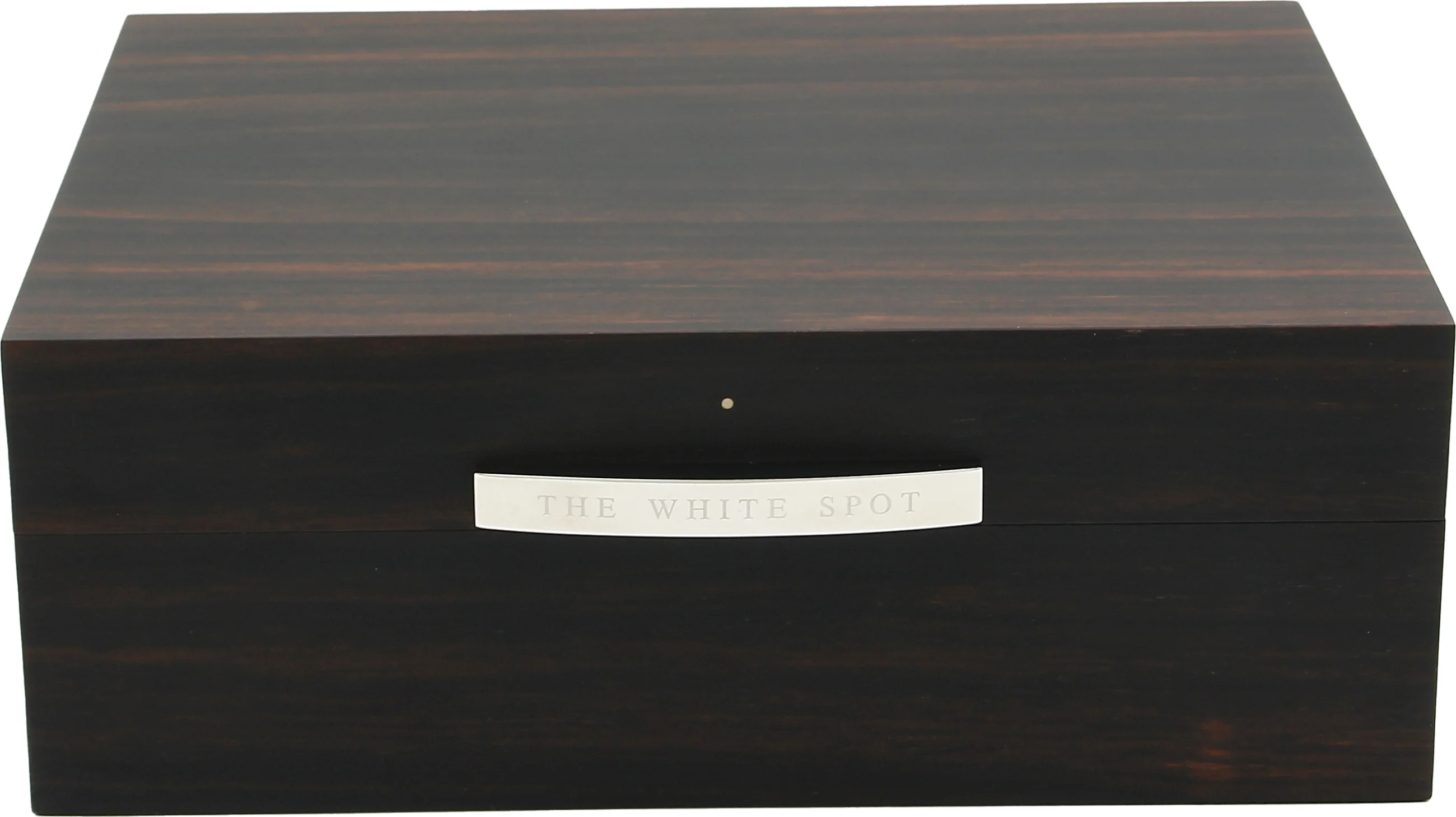 With a capacity of approximately 50 cigars, it offers ample space for your collection or even smaller cigar boxes. The stylish handle made of shiny chrome, engraved with the White Spot logo and the famous white dot, underscores the aesthetically harmonious overall appearance and the exclusive brand identity. Even at first glance, it is clear that this is a high-quality brand product.