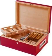 Každý humidor má mimořádně pevnou konstrukci korpusu z MDF (dřevovláknité desky střední hustoty). Deska MDF je hustší než standardní překližka a obsahuje vrstvy tepelně upravených dřevěných vláken v kombinaci s voskem a lepicími materiály. Toto skálopevné jádro se méně rozpíná a smršťuje, jak se to často stává u přírodního dřeva, a je tak optimální volbou pro výrobu humidorů.