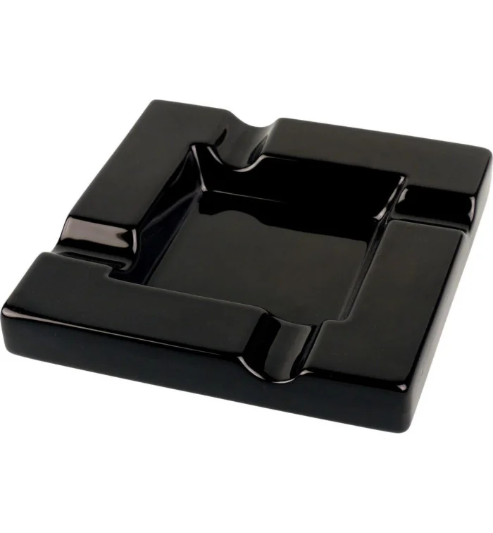 Ideální pro společenská setkání Tento klasický černý keramický popelník na doutníky je ideální pro příjemné chvíle s přáteli nebo obchodními partnery. Se čtyřmi velkorysými drážkami na doutníky nabízí dostatek prostoru pro bezpečné uložení až čtyř doutníků – ideální pro společné posezení s doutníky. Stylový design a praktické použití Elegantní lesk černé keramiky dodává popelníku sofistikovaný vzhled, který harmonicky zapadne do jakéhokoli prostředí – ať už na balkoně, v kuřárně nebo v obývacím pokoji. S rozměry 20 x 20 cm nabízí dostatek prostoru pro popel z doutníků a zároveň zůstává nenápadný. Díky své pohodlné výšce 3,5 cm je popelník stabilní a praktický. Hladký keramický povrch umožňuje obzvláště snadné čištění, takže je okamžitě připraven k opětovnému použití. Přehled hlavních vlastností
