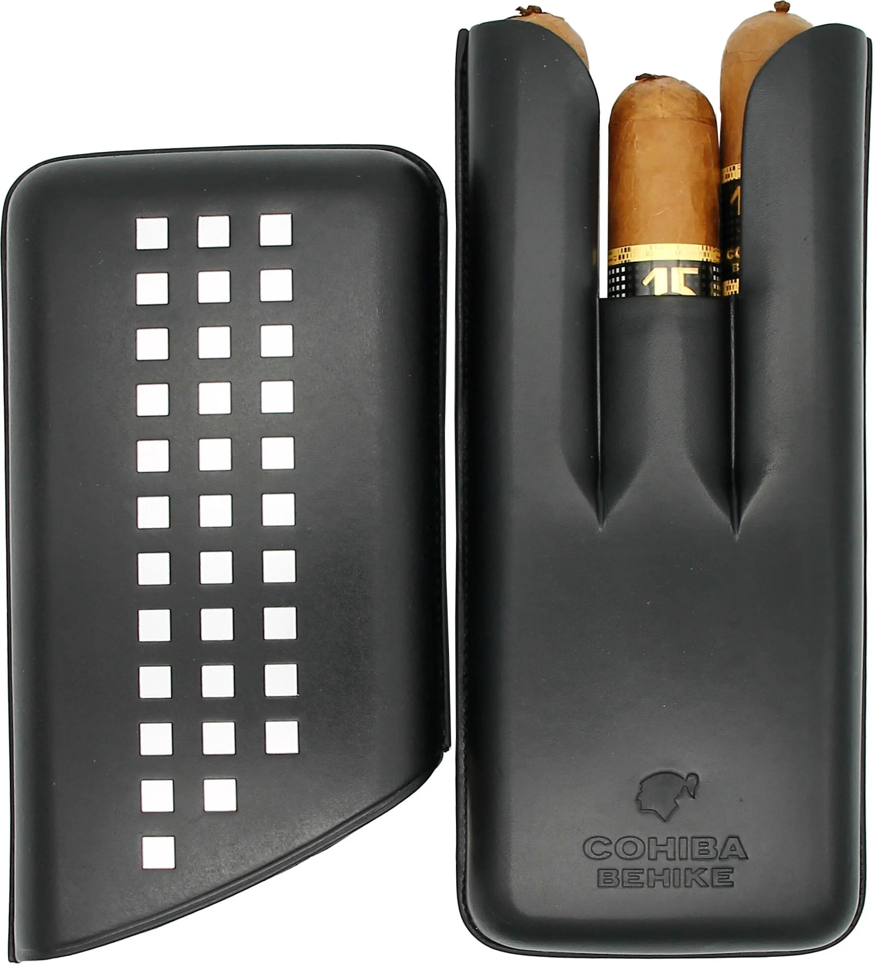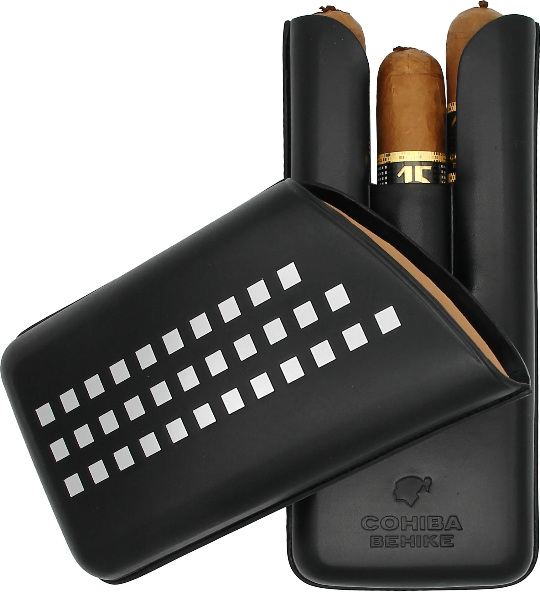 Kožené pouzdro na 3 doutníky Cohiba Behike v černém provedení