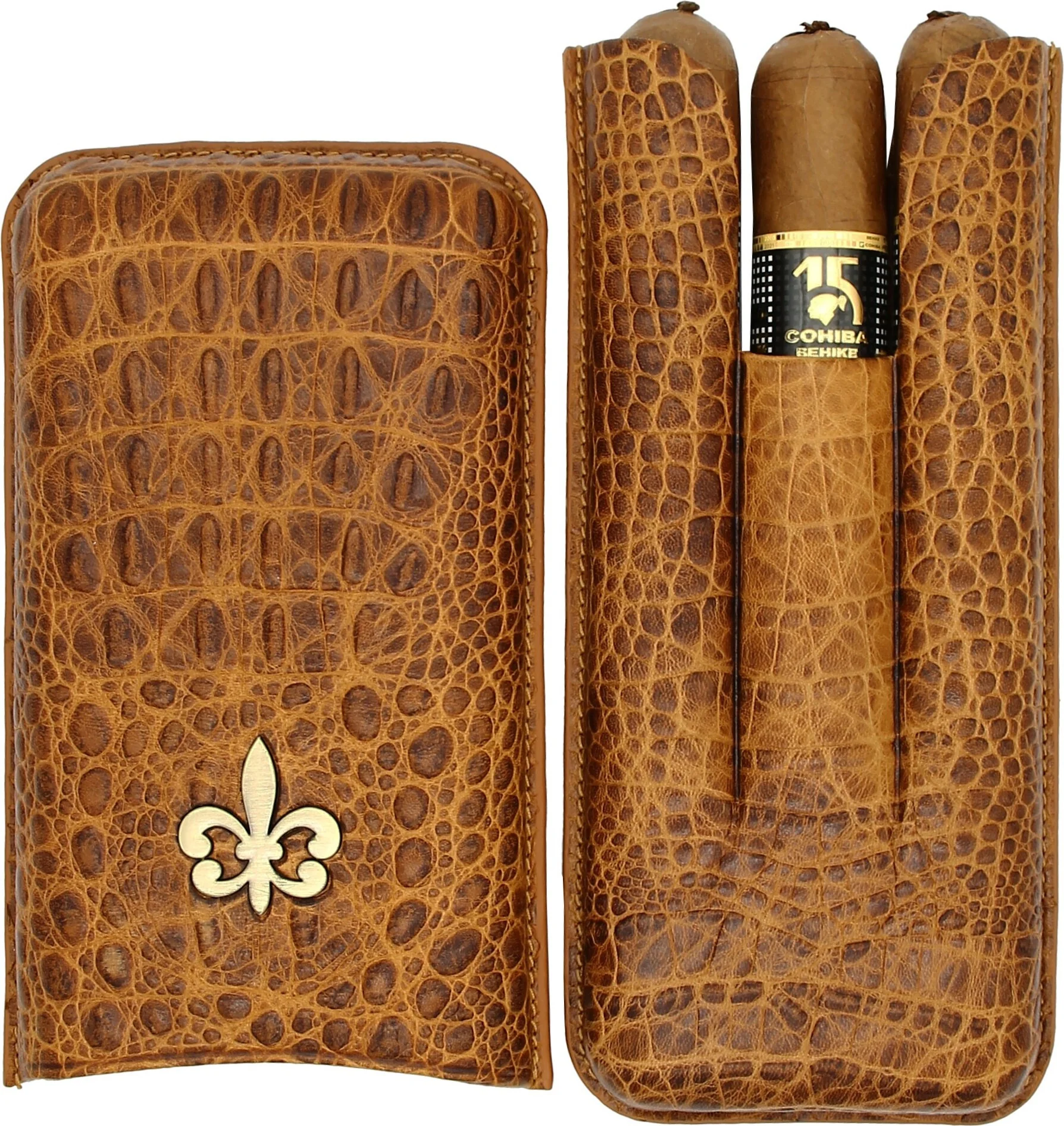 Montecristo Fleur de Lis Leather Cigar Case, Crocodile Pattern, Brown