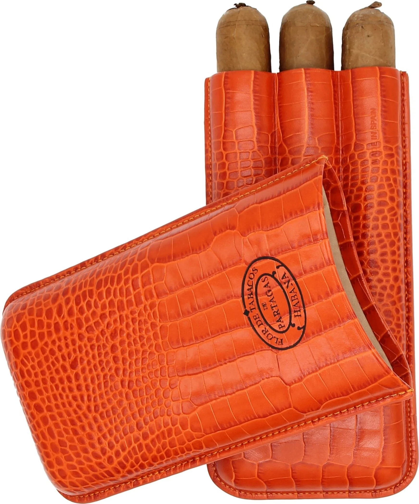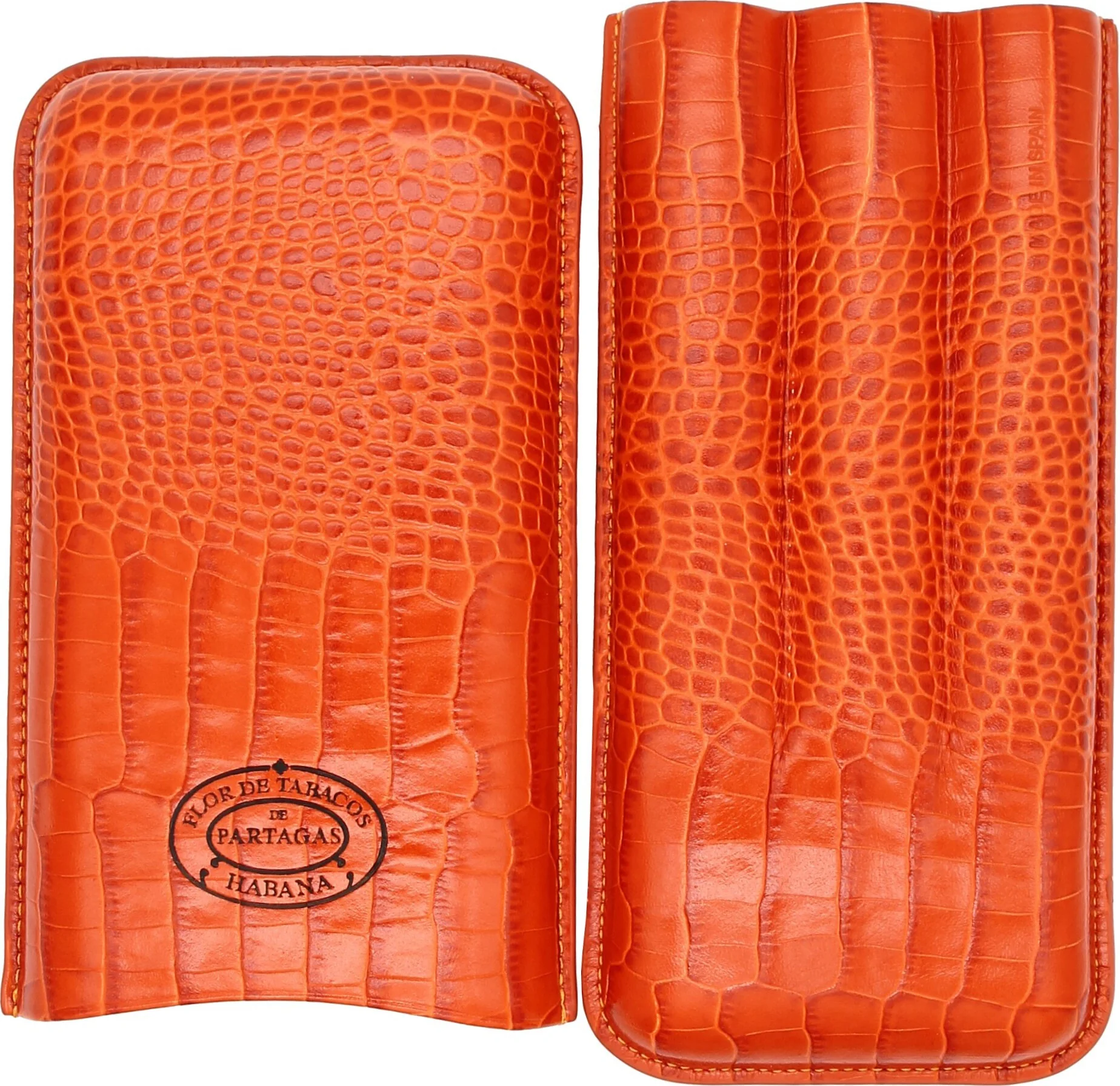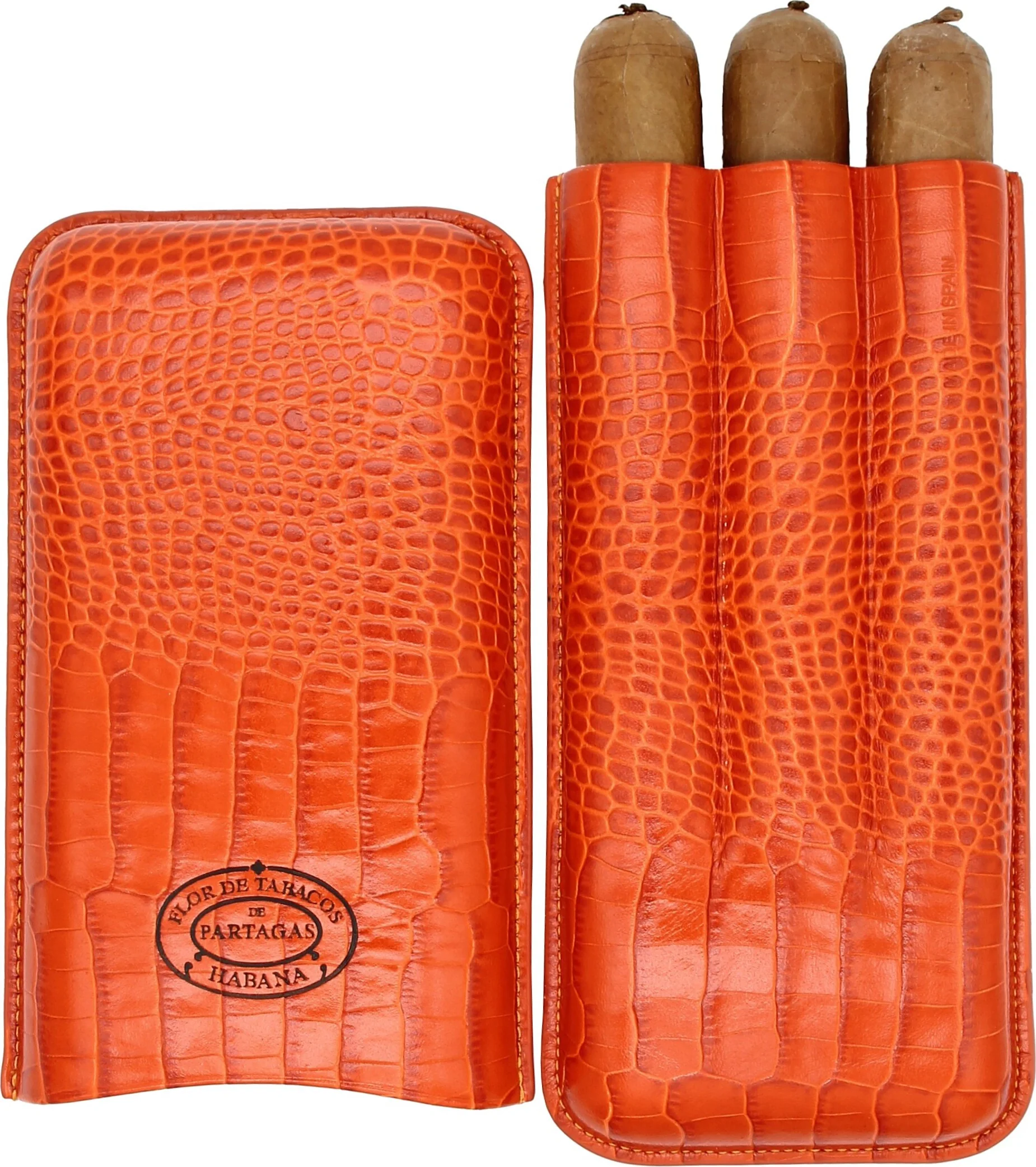 Kožené pouzdro na 3 doutníky Partagas Linea Classic v oranžovém provedení