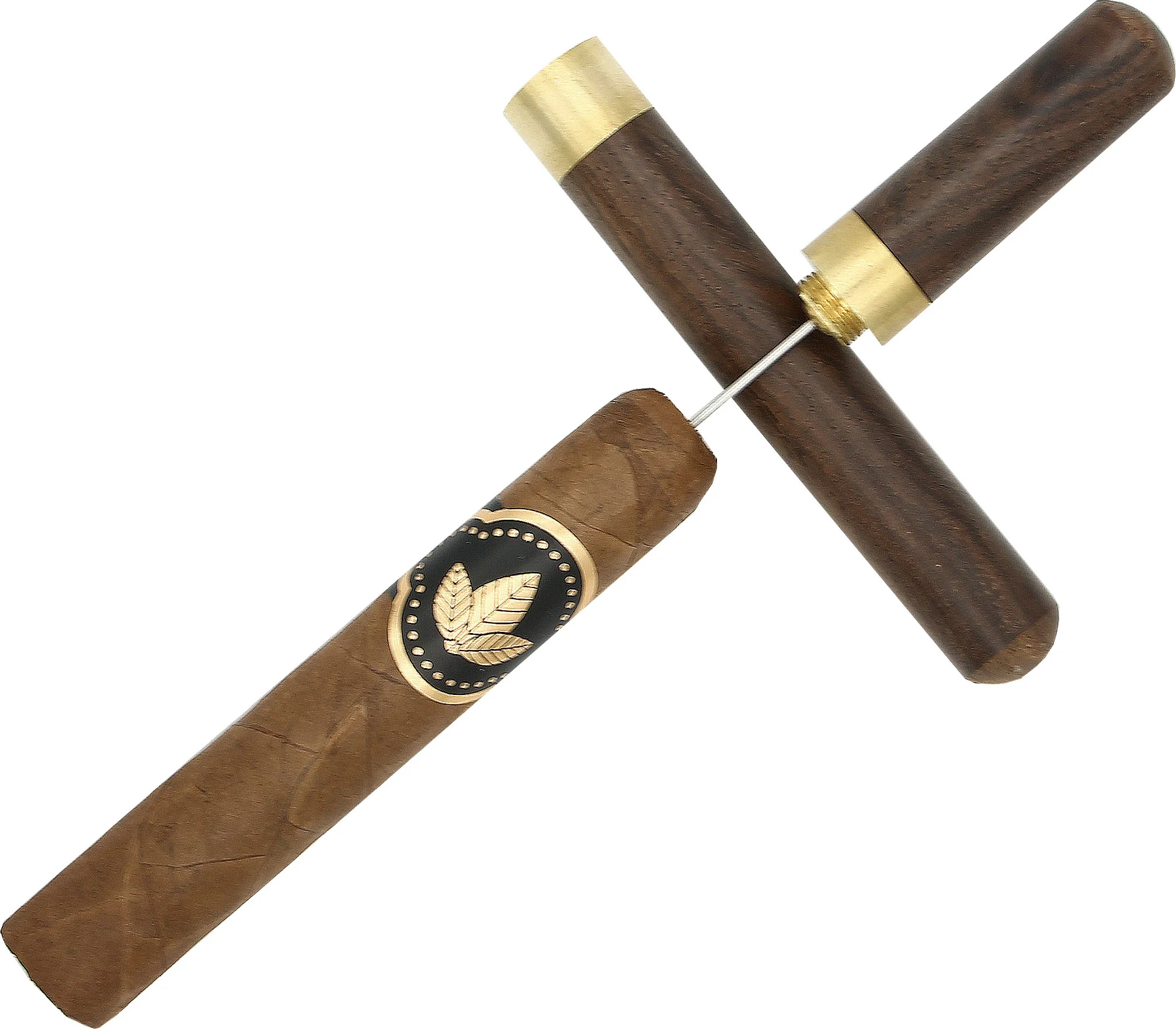 Elegantní doutníkový nástroj z ebenového dřeva s masivním závitem z nerezové oceli. S tímto nástrojem vám jako milovníky doutníků nebude už nic chybět. Dva šroubovací závity odhalují dva různé nástroje pro pravý požitek z doutníků. Jeden slouží ke zlepšení tahu doutníku, který byl možná srolován příliš těsně a kompaktně. Díky délce 9 cm a malým integrovaným bodcům tato pomůcka zachraňuje doutníky všech formátů.