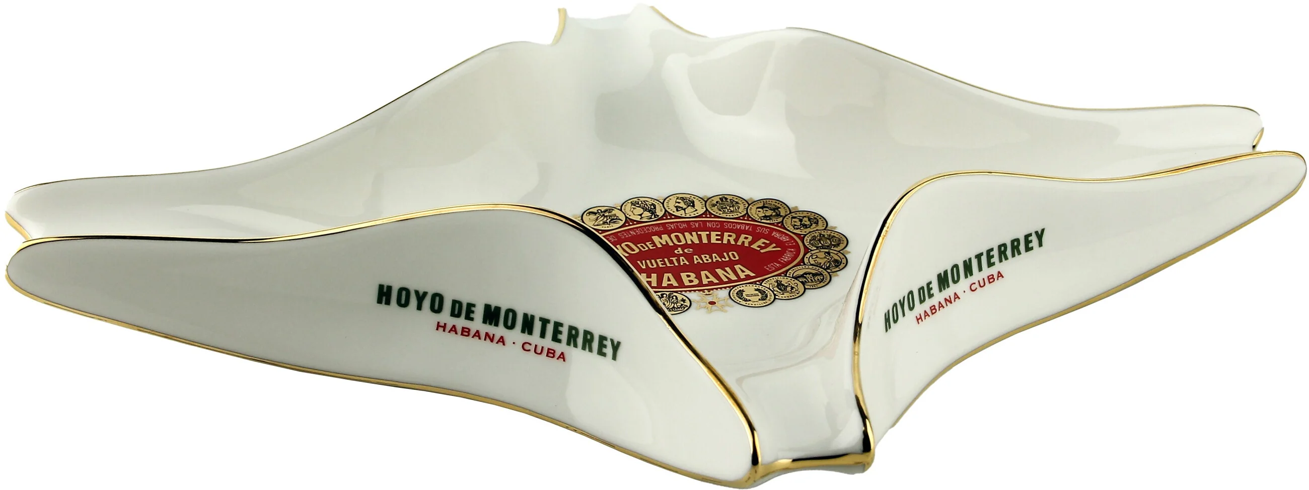 **Popelník Hoyo de Monterrey na 4 doutníky** je působivý popelník na doutníky od známé kubánské značky Hoyo de Monterrey. Díky svému neobvyklému tvaru a elegantnímu designu zaujme v každém prostředí. Popelník má prostor až pro čtyři doutníky a kombinuje funkčnost se stylovým luxusem.