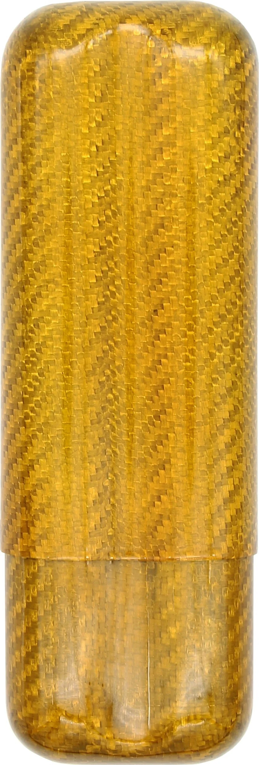 Pouzdro na doutníky z lehkého karbonu se zářivě zlatou povrchovou úpravou je vynikajícím příkladem moderní elegance. Nabízí prostor pro dva doutníky o maximálním průměru 2,5 cm. Délka pouzdra je variabilní a lze ji nastavit od 15,5 cm do přibližně 21 cm.