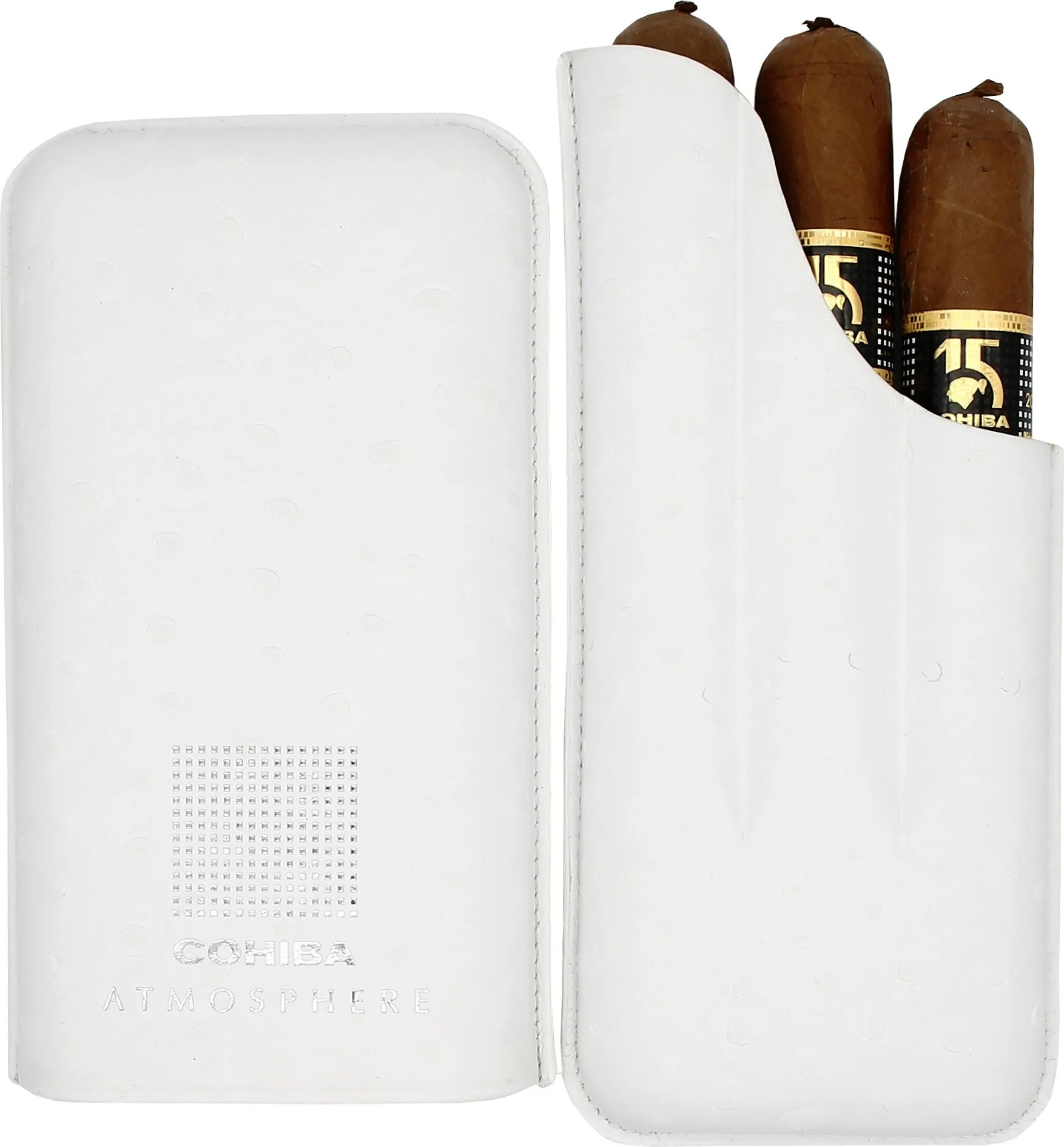 The cigar case is made of high-quality white leather with an attractive grain pattern, making it exceptionally comfortable and supple to the touch.