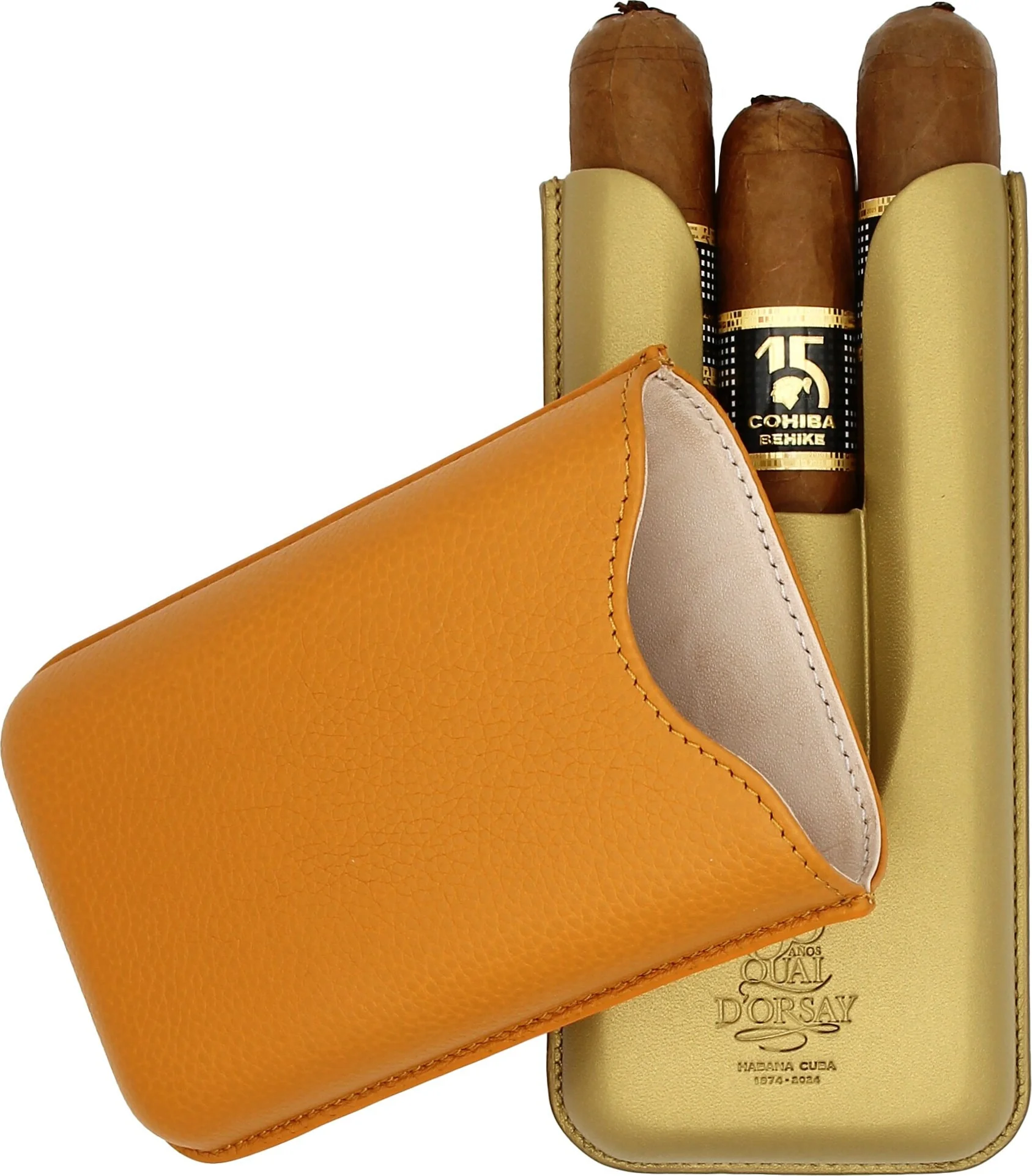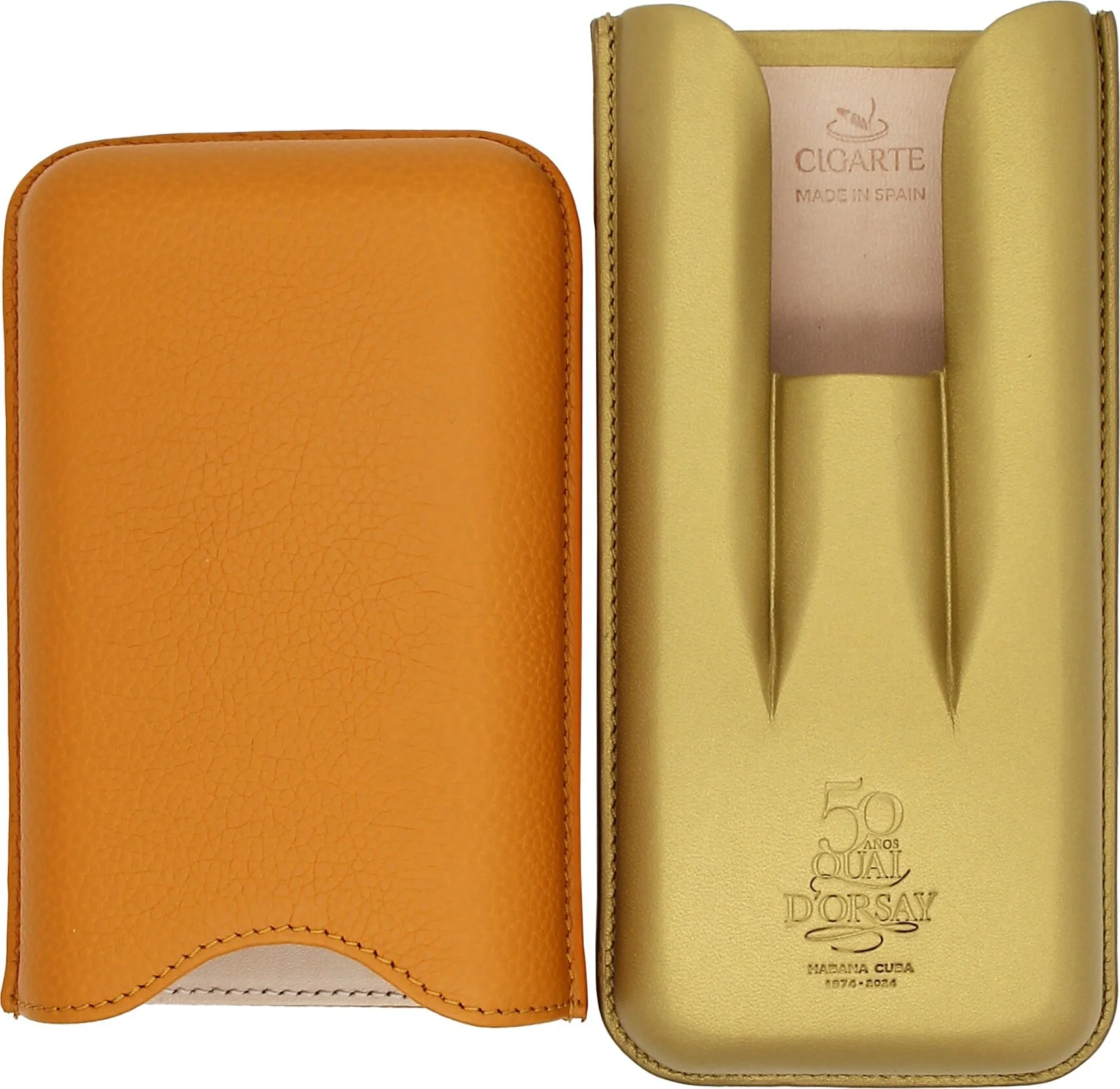 - Výroba a design: Pouzdro vyrobila španělská společnost Cigarte ve Španělsku. Vyznačuje se barevnou kombinací oranžové a elegantní zlaté, s reliéfní kůží na horní straně a hladkou kůží na spodní straně.