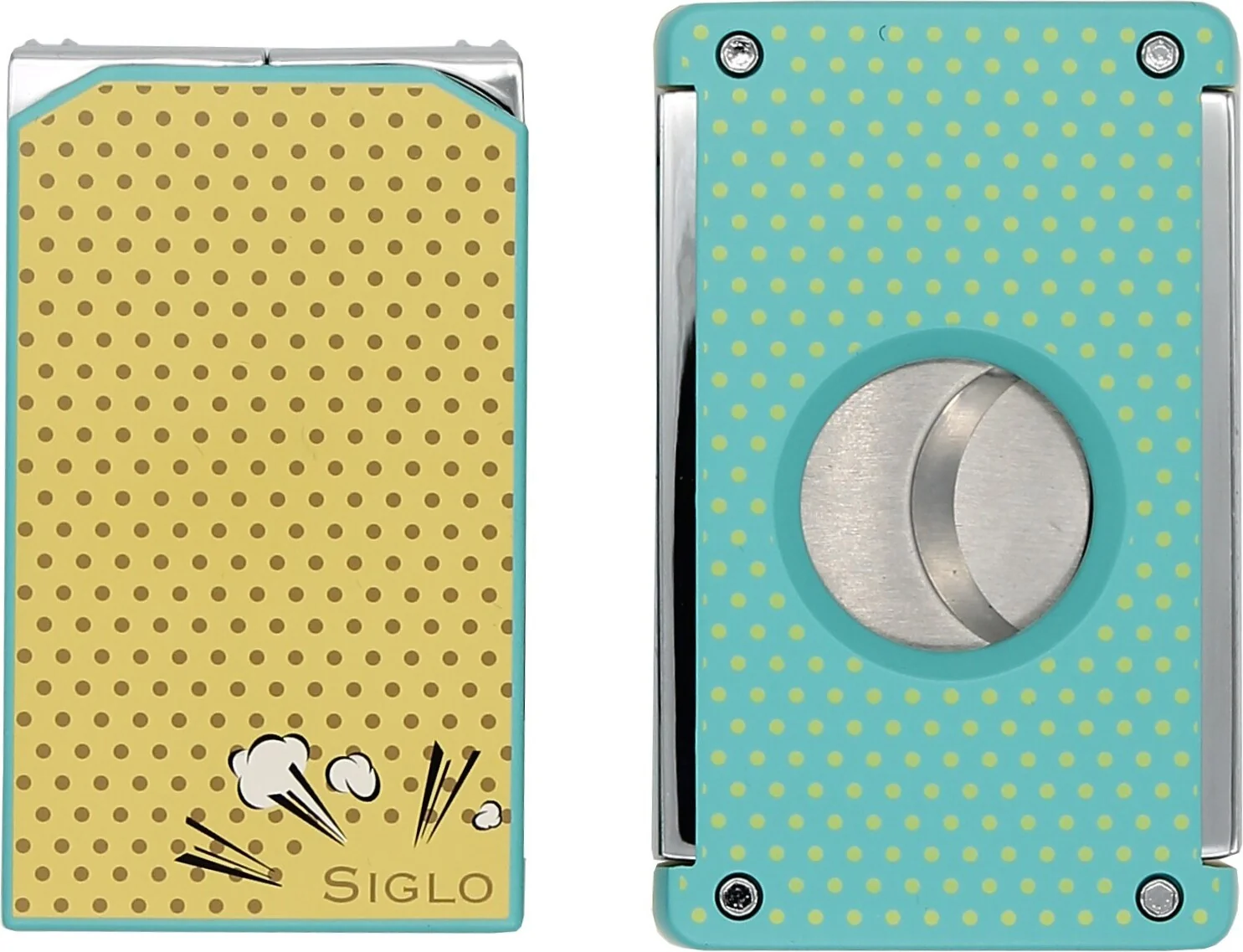 The Siglo Dog Lighter and Cigar Cutter Set is a striking and creatively designed duo for cigar lovers. Both accessories feature a smoking French Bulldog in pop art style. The backs echo the motif with a typical polka dot pattern, emphasizing the artistic character of the design. The set immediately catches the eye and adds a modern, humorous touch to any cigar collection.