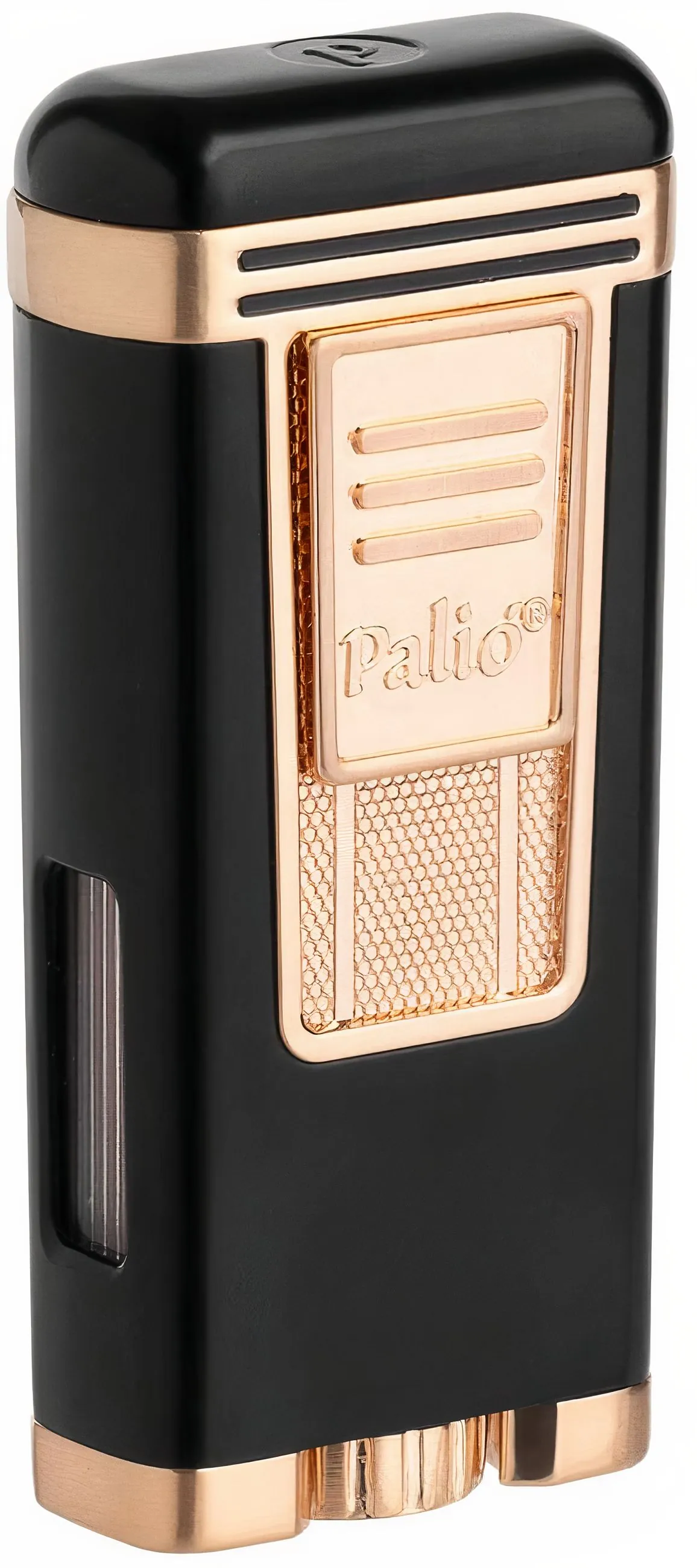 **Zapalovač Palio Polaris Jet v černé a růžově zlaté barvě** je vysoce výkonný tryskový zapalovač s elegantním matným černým povrchem a elegantními růžově zlatými akcenty. Tento zapalovač se třemi výkonnými tryskovými plameny, které se spojují ve spolehlivý hořák, nabízí konzistentní zapalování pro milovníky doutníků. Zapalování je chráněno ochrannou krytkou, která zabraňuje usazování prachu a žmolků a zajišťuje tak dlouhotrvající výkon. Logo Palio je viditelně zobrazeno na předním spínači zapalování, který zapalovač zapálí plynulým posunem směrem dolů. Velké průhledné okénko na levé straně umožňuje snadnou kontrolu stavu paliva. Zapalovač je samozřejmě plnitelný a intenzitu plamene lze pohodlně nastavit rukou na základně zapalovače bez použití dalších nástrojů.