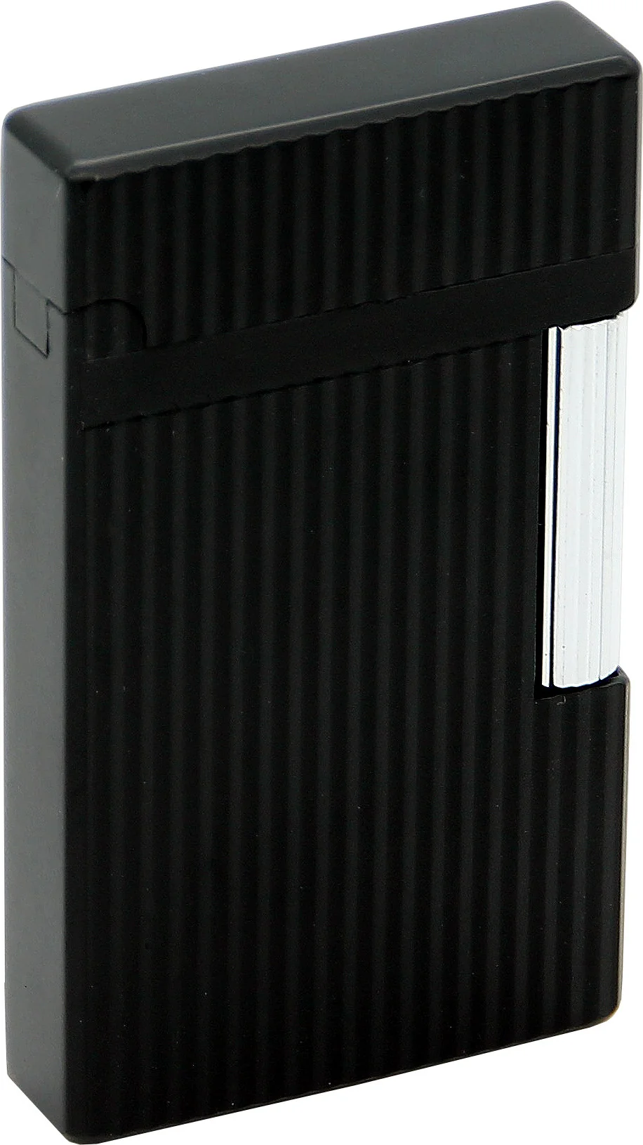 The lighter uses a classic friction wheel ignition and a soft flame. The lid reliably protects the ignition mechanism from dust and dirt. When opened, the lighter can be ignited using the silver rotating roller, which is moved toward the user.