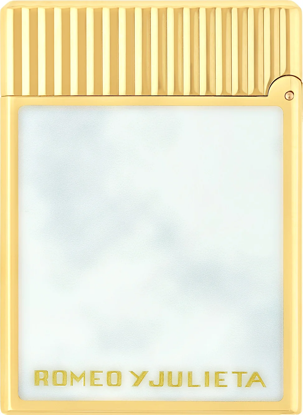 The front of the lighter is adorned with a relief medallion depicting the famous balcony scene from Romeo and Juliet, a symbol of love and passion. White lacquer surrounds the medallion, which is also repeated on the back. There, you'll also find the elegant "Romeo y Julieta" lettering.