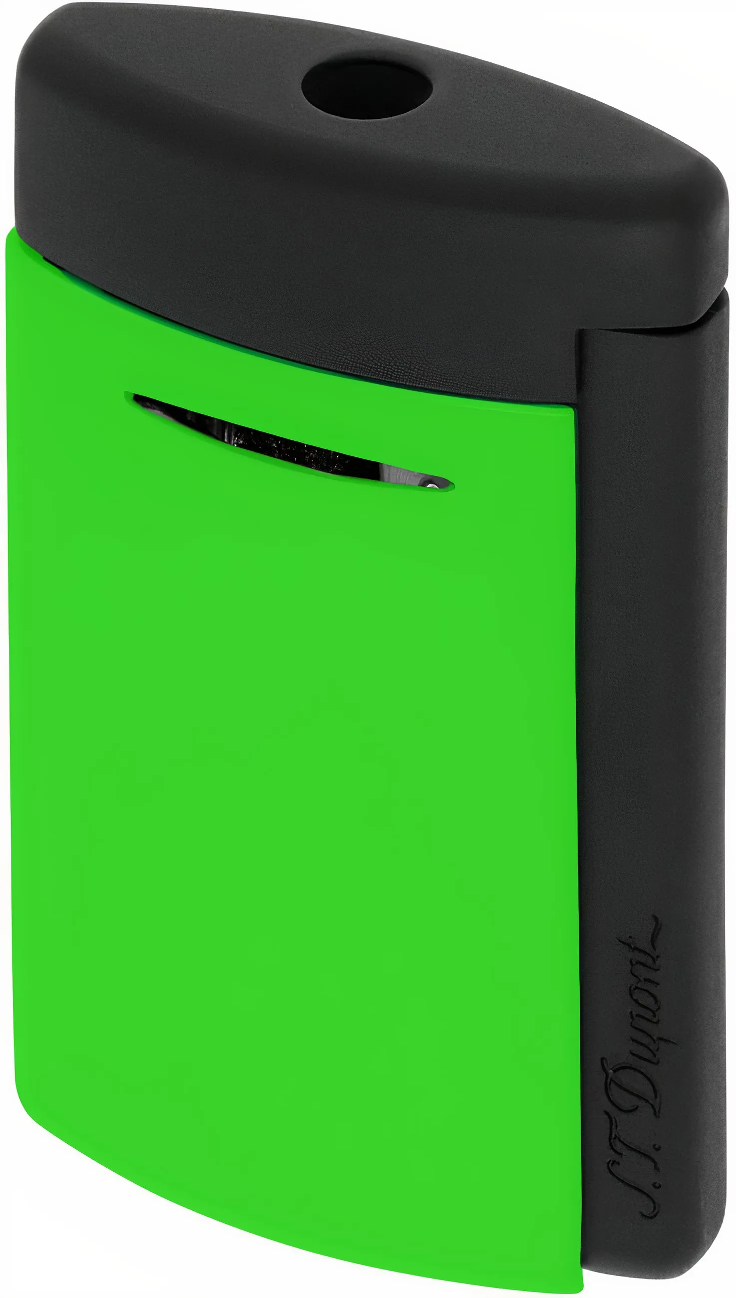 Zapalovač S.T. Dupont Minijet v zelené barvě Fluo Green je nový model uvedený na trh v roce 2024 jako součást zářivé kolekce Fluo. Má nápadné zelené tělo s matnými černými prvky. Tento malý a praktický jednoplamenný tryskový zapalovač je ideální pro každodenní použití.