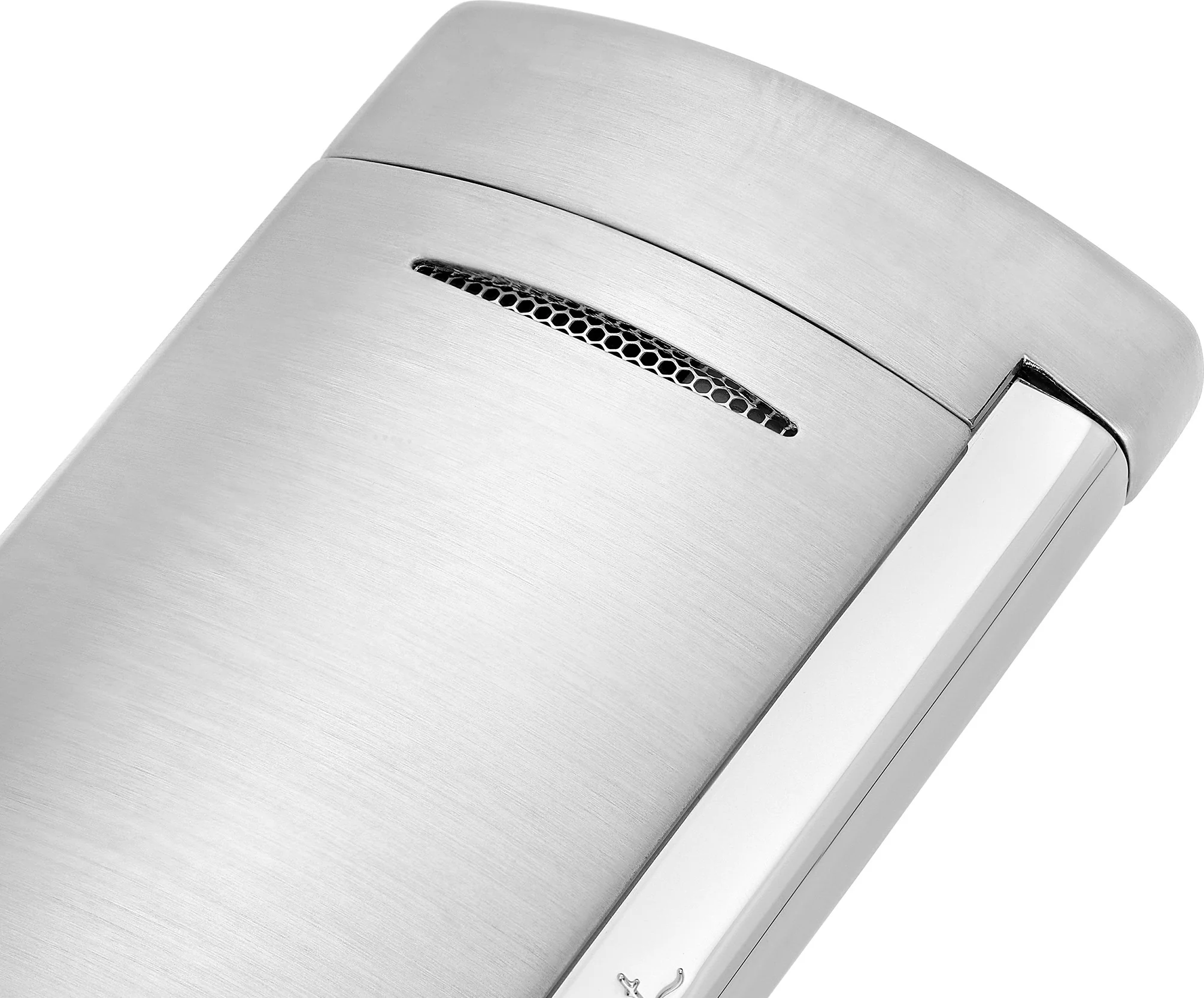 Zapalovač S.T. Dupont Minijet v kartáčovaném chromu s lesklými akcenty je sofistikovaný a praktický zapalovač, který zaujme svým silným plamenem a elektrickým piezoelektrickým zapalováním. Kartáčovaná povrchová úprava s leštěnými chromovými akcenty z něj činí stylový doplněk pro každodenní použití.