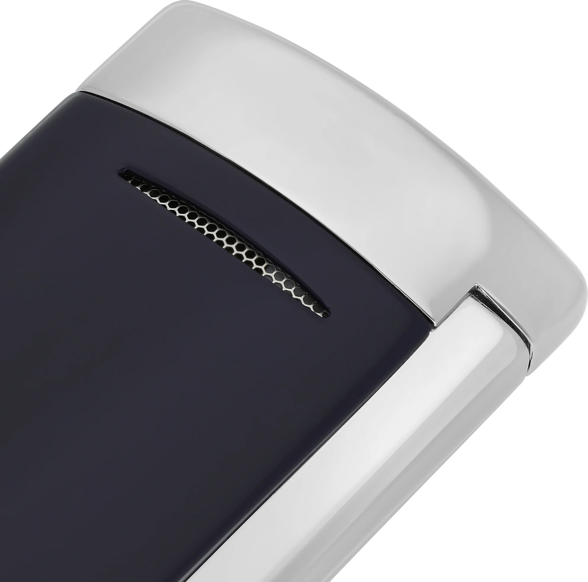 Zapalovač S.T. Dupont Minijet v tmavě modré barvě s chromovými akcenty je sofistikovaný a praktický zapalovač, který zaujme svým silným plamenem a elektrickým piezoelektrickým zapalováním. Matně modrá povrchová úprava s leštěnými chromovými akcenty z něj činí stylový doplněk pro každodenní použití.